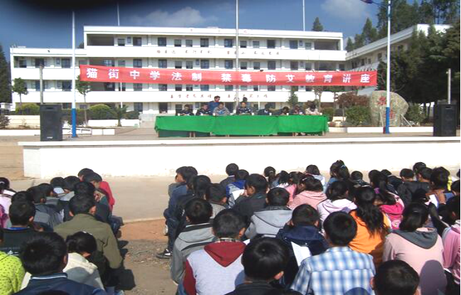 猫街镇将青少年毒品预防教育工作纳入禁毒工作责任状、纳入综治维稳宣传工作,认真考核。根据青少年生理和心理特点,以校园为主阵地,发动综治、团委、派出所、司法所、卫生院、中小学等部门和单位共同参与,通过禁毒知识的普及,增强青少年“识毒、防毒、拒毒”的意识和能力,实现了青少年毒品预防教育与科学文化教育、思想道德教育和法治教育的有机融合,通过小手拉大手的宣传效应,进一步降低毒品对社会的危害,构建平安猫街。