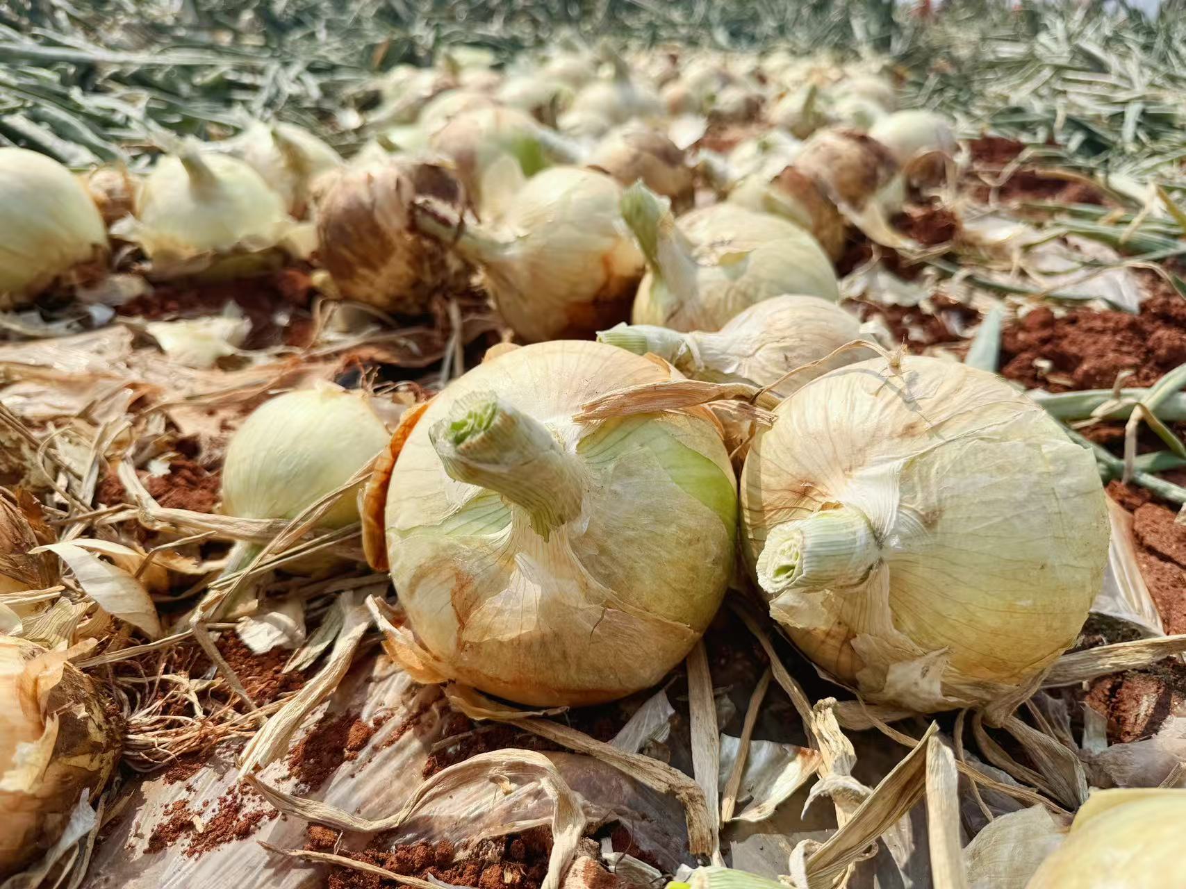 走进基地,翠绿的洋葱叶下,一个个圆滚滚的洋葱错落有致地排列着,50余名工人正忙着采收洋葱,起葱、分拣、装袋、搬运、装车,有条不紊地忙碌着,空气中弥漫着泥土的清新与洋葱特有的辛香,交织出春日田野独有的气息。