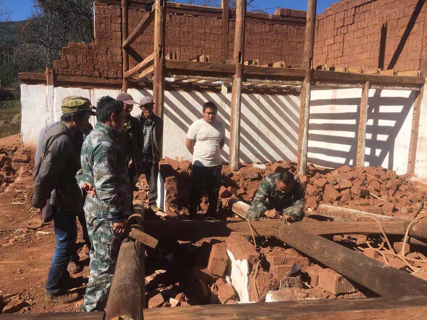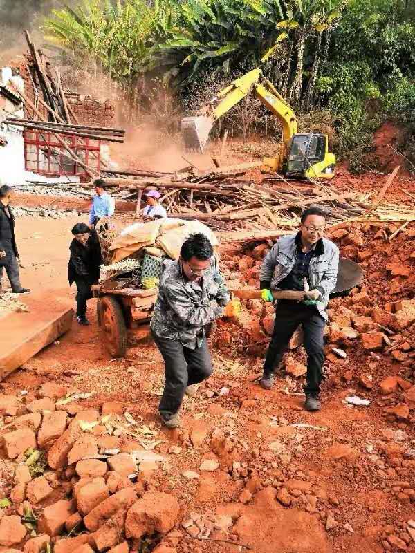 武定县插甸镇老木坝上、下村是典型的傈僳族聚居村,为扎实推进老木坝傈僳寨易地搬迁安置点拆旧工作和老木坝美丽乡村项目,近日,老木坝村里无论白天黑夜,晴天雨天,几乎每天都可以看见省委组织部驻村工作队、镇级工作队、村三职、村干部、党员群众齐心协力拆旧房、搬东西、清理道路的场景。正可谓“工农齐欢,撸袖扫烟尘。高天滚滚不觉寒,歌声笑语连连。更上危楼揭瓦,直捣千年陈俗。卷起残渣碎片,换了翠水青山”