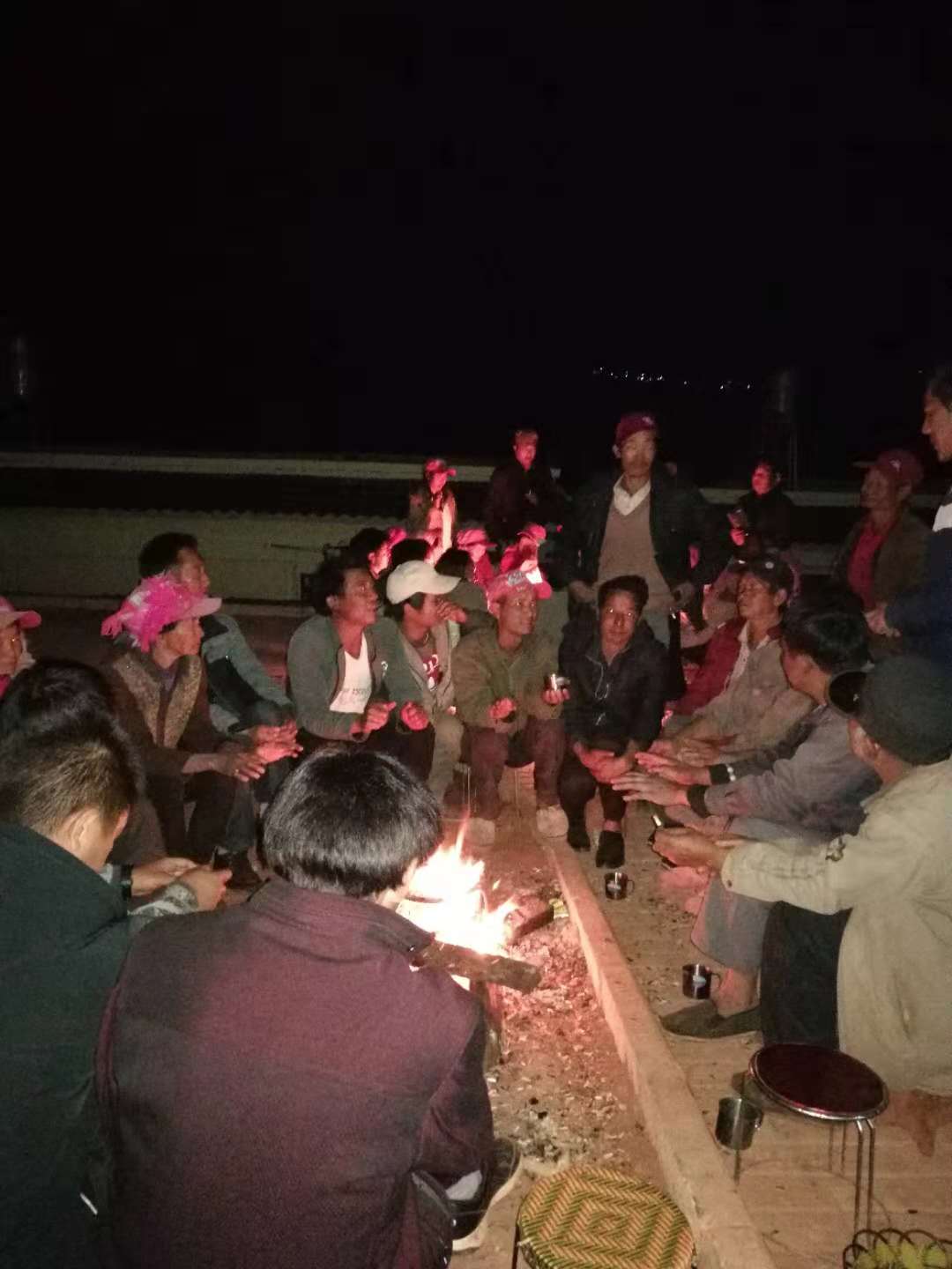 图1 镇、村干部、驻村工作队员深夜在老木坝傈僳寨易地搬迁安置点召开火塘户长会