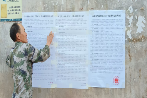 眼下正值森林草原防火关键期,随着气温回升、风干物燥,叠加春耕生产及节假日活动,森林草原防火形势严峻。为有效预防和遏制森林草原火灾发生,武定县田心乡统筹谋划、精准发力,打出“责任落实、宣传引导、隐患排查、应急保障”组合拳,全力守护辖区森林资源和群众生命财产安全。