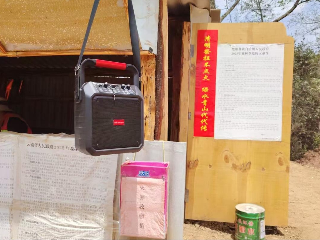 蓝牙音箱“循环响”,科技赋能提效能。在重要林区出入口等人流密集场所,布设智能蓝牙音箱7台,循环播放防火警示音频,以案说法,播放因祭祀引发山火的典型案例,村民感叹:“烧纸钱判刑又赔钱,真不敢侥幸了!”同时,鼓励群众通过手机连接音箱播放防火标语,构建“人人参与、全民共防”的宣传格局。