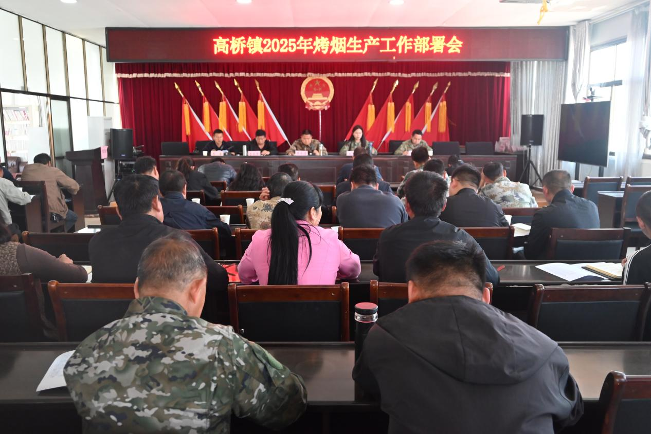 为抢抓烤烟移栽黄金期,4月25日,高桥镇组织召开 2025 年烤烟生产工作部署会议暨现场观摩。党政班子成员、部分站所负责人、烟叶站工作人员、烤烟辅导员及各村党总支书记等50余人参加。