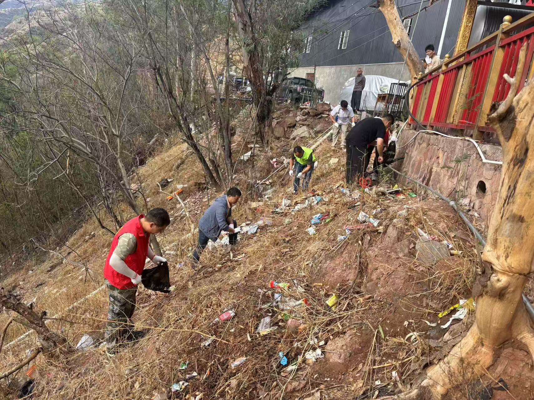 清晨8时30分,东坡傣族乡政府门前党旗飘扬,乡机关全体干部职工整齐列队,乡人大主席现场动员部署,宣布专项行动正式启动。乡队伍兵分三路,一组由乡人大主席李继舜带队,重点整治大水井到东坡幼儿园沿线卫生死角;一组由副乡长刘永清带队,针对大转拐山坡白色垃圾、建筑废料等“顽疾”开展“地毯式”清理;一组由乡党委副书记钱鉴炜带队,重点关注乡街道死角垃圾。活动现场,大家手持铁钳、垃圾夹和清洁袋,对乡道路沿线卫生环境进行全面清理。同时,全乡8个村委会积极响应,召集群众开展辖区卫生整治,与乡干部形成“上下呼应、全域覆盖”的整治合力。