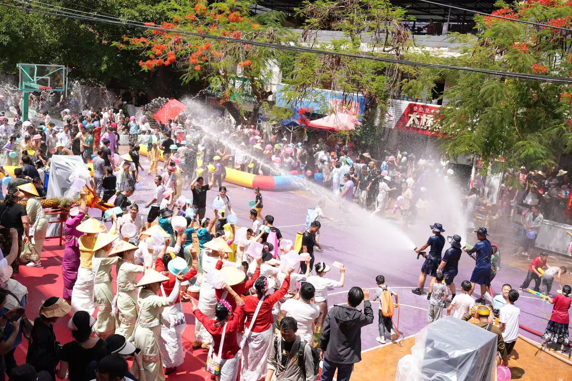 “泼水节不仅是玩水,更是傣家人对生命的礼赞。”年过六旬的傣族文化传承人李玉贵向游客介绍,“每一滴水都承载着洗去灾病、迎接新生的寓意。”