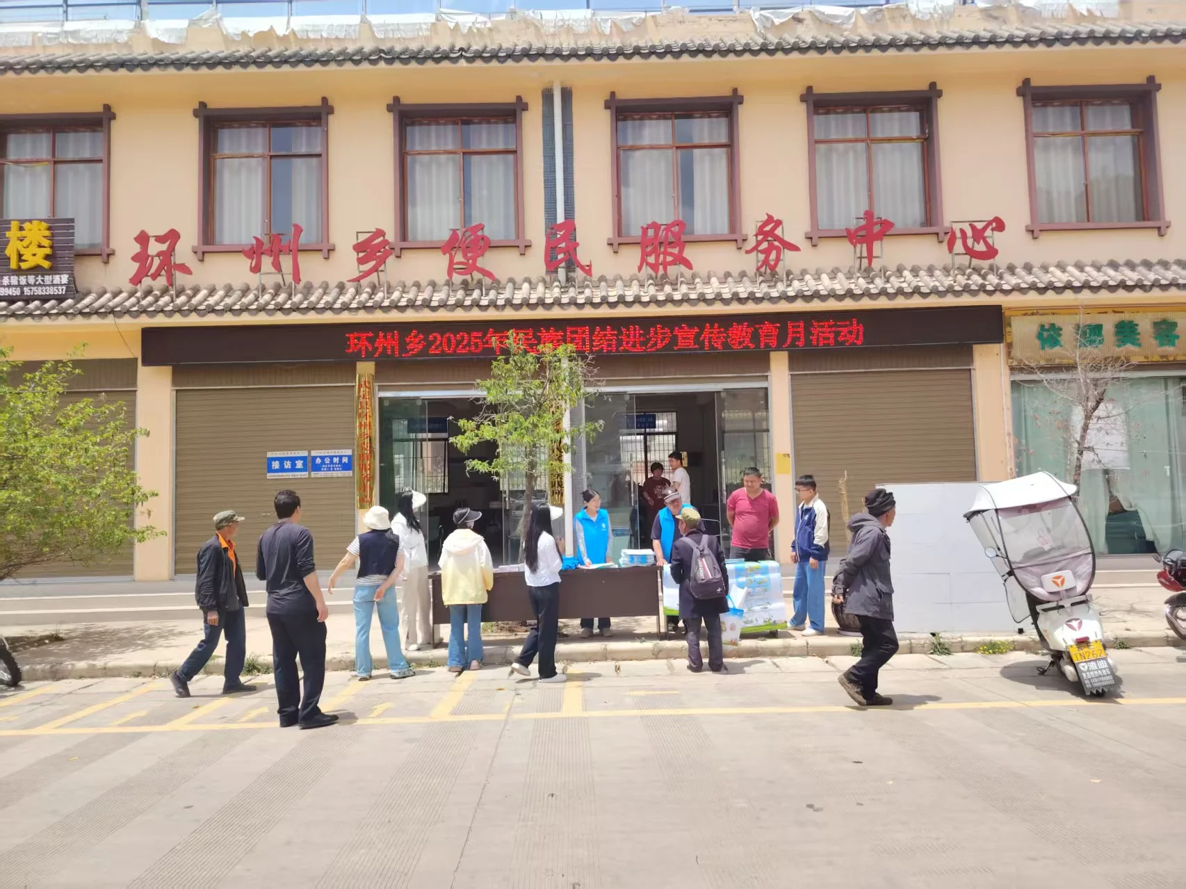 为进一步铸牢中华民族共同体意识,深化民族团结进步教育,4月23日,环州乡基层党建办联合司法所、新时代文明实践所,利用周三集镇赶集日人流密集的契机,在集镇中心开展“民族团结进步宣传月”主题活动,通过“面对面”宣讲、“零距离”服务,让民族团结理念飞入寻常百姓家。