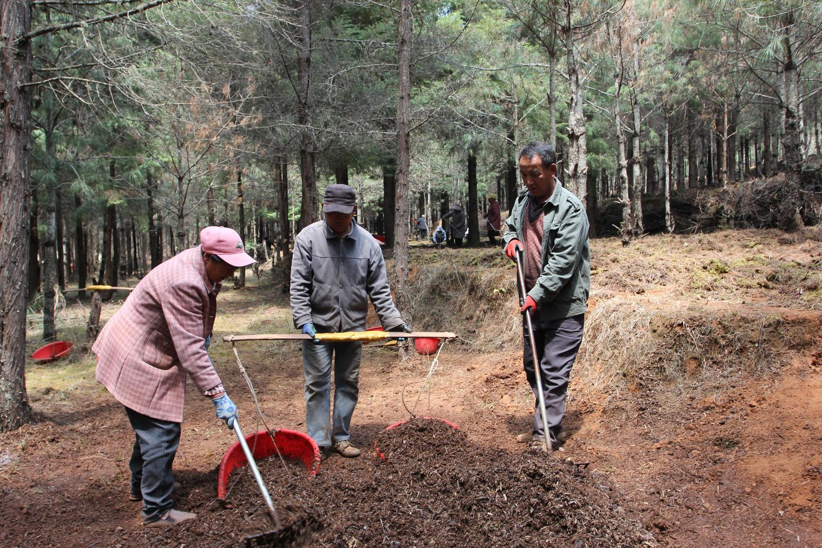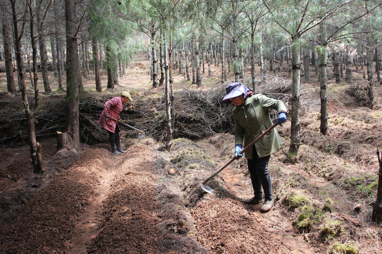 随着深入探索种植方式,康照村长山坡400余亩人工林吸引了李孟芩,丰富的林业资源,高海拔、冷凉气候、就近富裕劳动力,都为她采用“林下套种大球盖菇”模式提供了条件。李孟芩介绍:“大球盖菇(又称赤松茸)生长周期短、管理简便,适宜在藏柏、华山松树林遮阴度高的环境中种植。通过覆盖树下原本的有机营养土、天然有序的树木遮阴都可以很好地调节温湿度,可实现全年多茬采收和反季种植,林下亩产可达1500公斤以上,产值突破3万元。菌渣还可作为有机肥反哺林地,形成‘林菌共生’的生态循环,既减少化肥使用,又提升土壤肥力,助力绿色农业发展。”