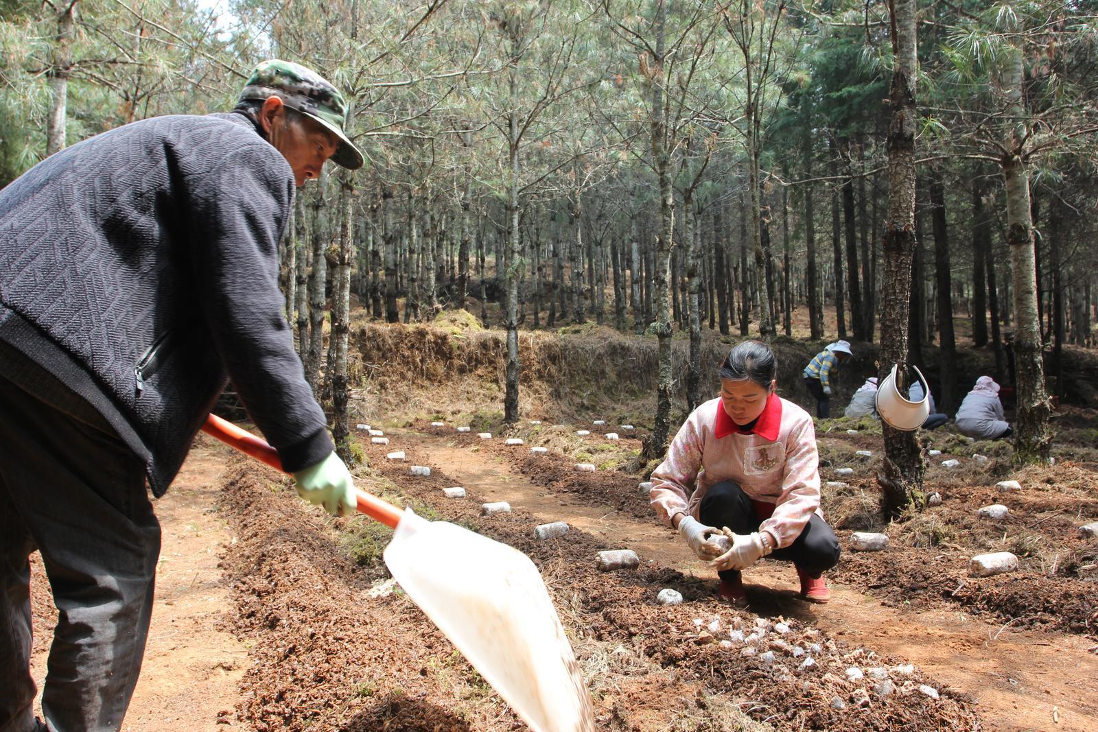 走进武定县插甸镇康照村林下人工菌种植基地,20多个村民们正在忙碌着:垄土、放菌棒、盖被,争取在雨季来临前把大球盖菇种下去。与此同时,云南裕茸峰种植专业合作社负责人李孟芩正在给村民讲解大球盖菇种植技术要领,保障后期出菇质量。