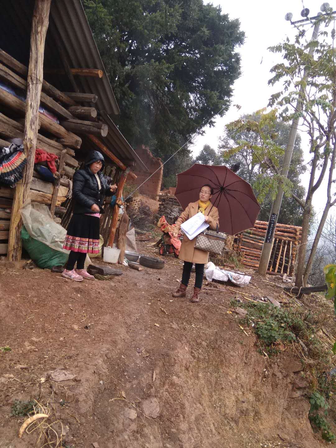 图5 干部雨中认真做调研记录