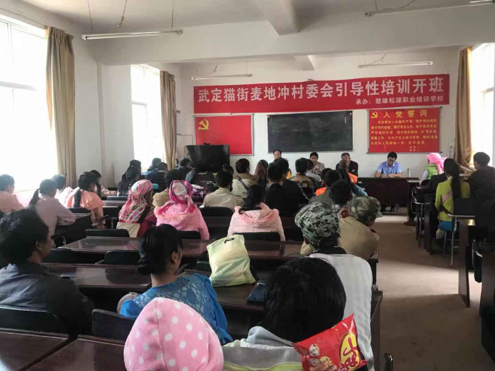 为增强麦地冲农村剩余劳动力就业能力水平,实现群众外出务工增加收入为目标,7月11日楚雄松源职业培训学校到麦地冲村委会开展外出务工人员引导性培训。