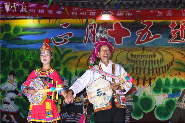 “正月十五赶猫街,我在猫街等着你……不来就说不来的话,莫让小妹空等着……”2月11日至12日,是以“山区中国梦,扶贫在行动”为主题的云南省武定县猫街镇第六届千人庆传统佳节。