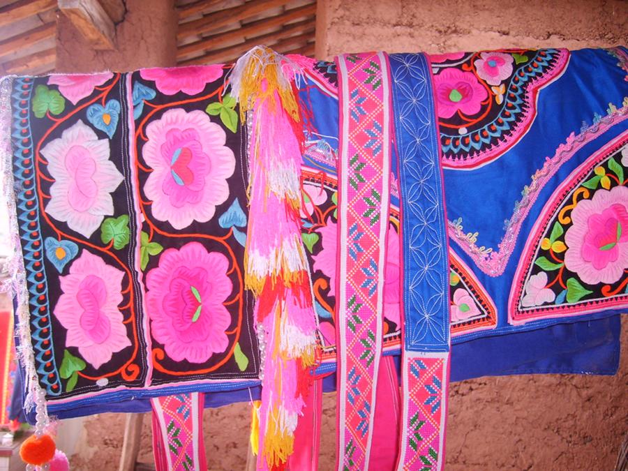 彝族服饰文化也是少数民族文化的一个重要组成部分,彝族乃苏支系红彝人传说是大理王族绣女的后代,红彝女大多擅长刺绣。其服饰的基调是蓝底红花,全身上下都绣以各种各样的红花图案,色彩明艳夺目,因此而得名。