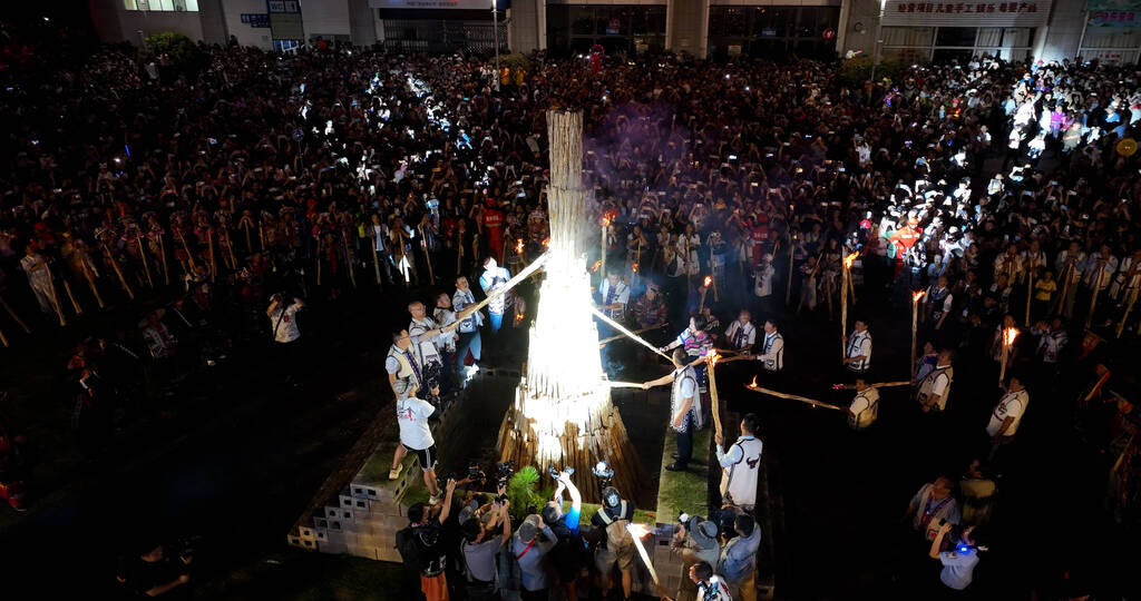 晚上8点,县体育馆以及各街道早已人山人海,各族群众穿上自己心爱的节日盛装,成群结队高高兴兴地来参加祭火仪式。在罗婺彝寨阿普笃慕广场,身着盛装的彝族毕摩们一边不断的念诵《取火经》,一边采用最古老的方式钻木取火,举行祭祖仪式,展示彝族人民不忘祖先及对美好生活的祈祷。