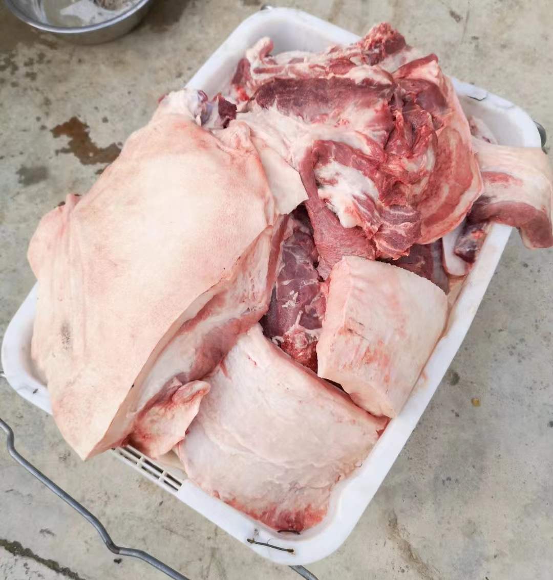 “首先我们要选上好的新鲜猪五花肋条肉,配以适量的盐、葱、酱油、花椒、豆豉、姜片、白糖、蜂蜜;最关键的还要选择我们村自家用被霜冻过之后的麻叶青菜腌制出来的酸腌菜……”邵师傅嘴里一边说着,双手一直忙个不停。