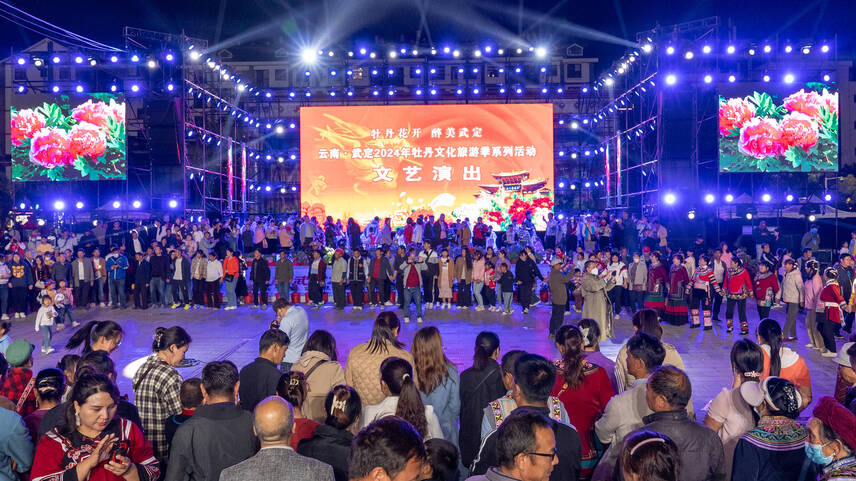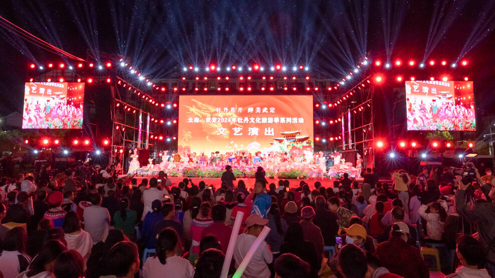 3月22日晚,“牡丹花开 醉美武定”云南武定2024年牡丹文化旅游季系列活动开幕式文艺演出在县城体育广场举行。