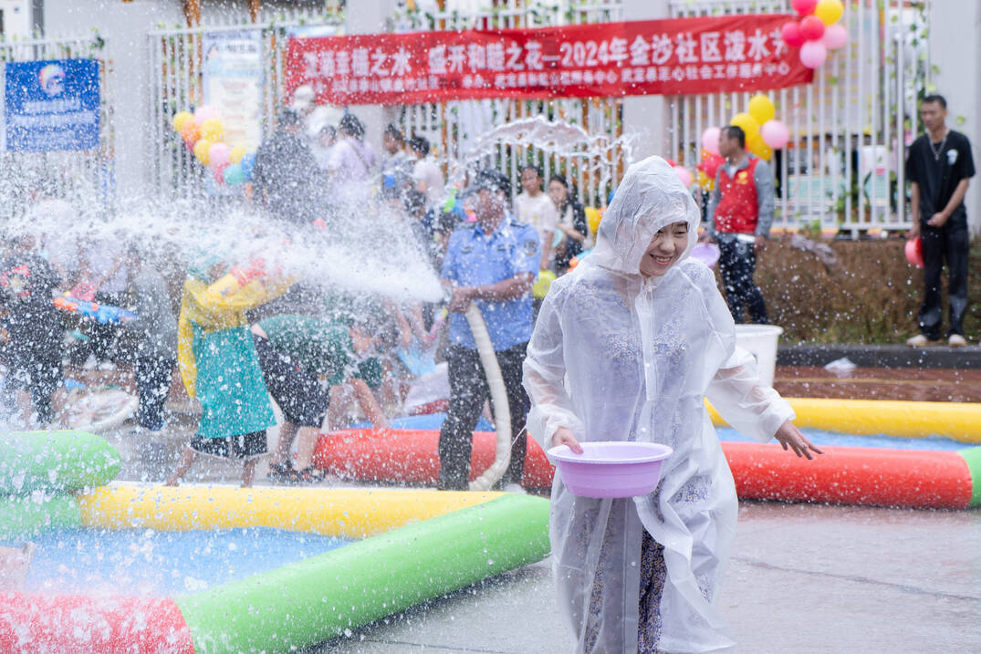 泼水狂欢之余,金沙社区还为现场游客准备了“奇幻泡沫趴”水上运动会、社区爱心义剪、传统民族歌舞表演以及商品展销等系列活动。