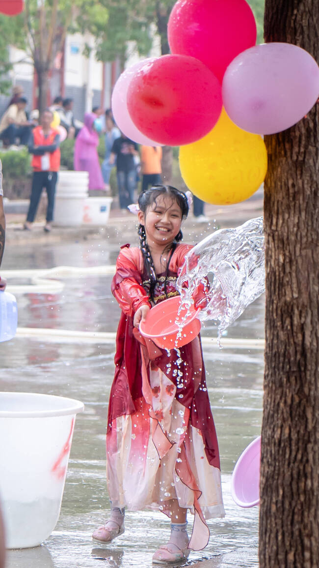 中午时分,泼水狂欢正式开启,象征着幸福、健康的吉祥之水瞬间从人群中飞洒出来,泼水的氛围感染了在场的每一个人,大家相互泼水,表达美好祝福,在泼水的人群中,有的还没反应过来,就被四面八方飞溅而来的晶莹水花湿透全身,广场上,随处可见或提着水桶、或拿着小盆、或手持水枪、全身湿透仍在全力“开战”的“泼手”们,大家不停地取水、泼水,你来我往,互相泼洒,泼得人睁不开眼,泼得人幸福欢畅,泼出了丰收的希望,泼出了欢乐和激情。