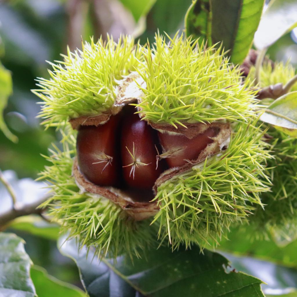金秋时节,正是板栗成熟季。走进高桥镇花桥村,漫山遍野的板栗树上,一个个“小刺球”沉甸甸地挂满枝头,油光闪亮的褐红色板栗在茂密的绿叶间,露出一张张“笑脸”。