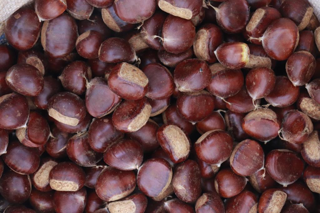 一阵风吹过,板栗园里下起了板栗雨。满地褐红色圆滚滚的板栗安静地躺在地上,等待着栗农把它们带回家。栗农们每天都会打上200—300斤,打板栗、捡板栗、给板栗去壳,忙得不亦乐乎。
