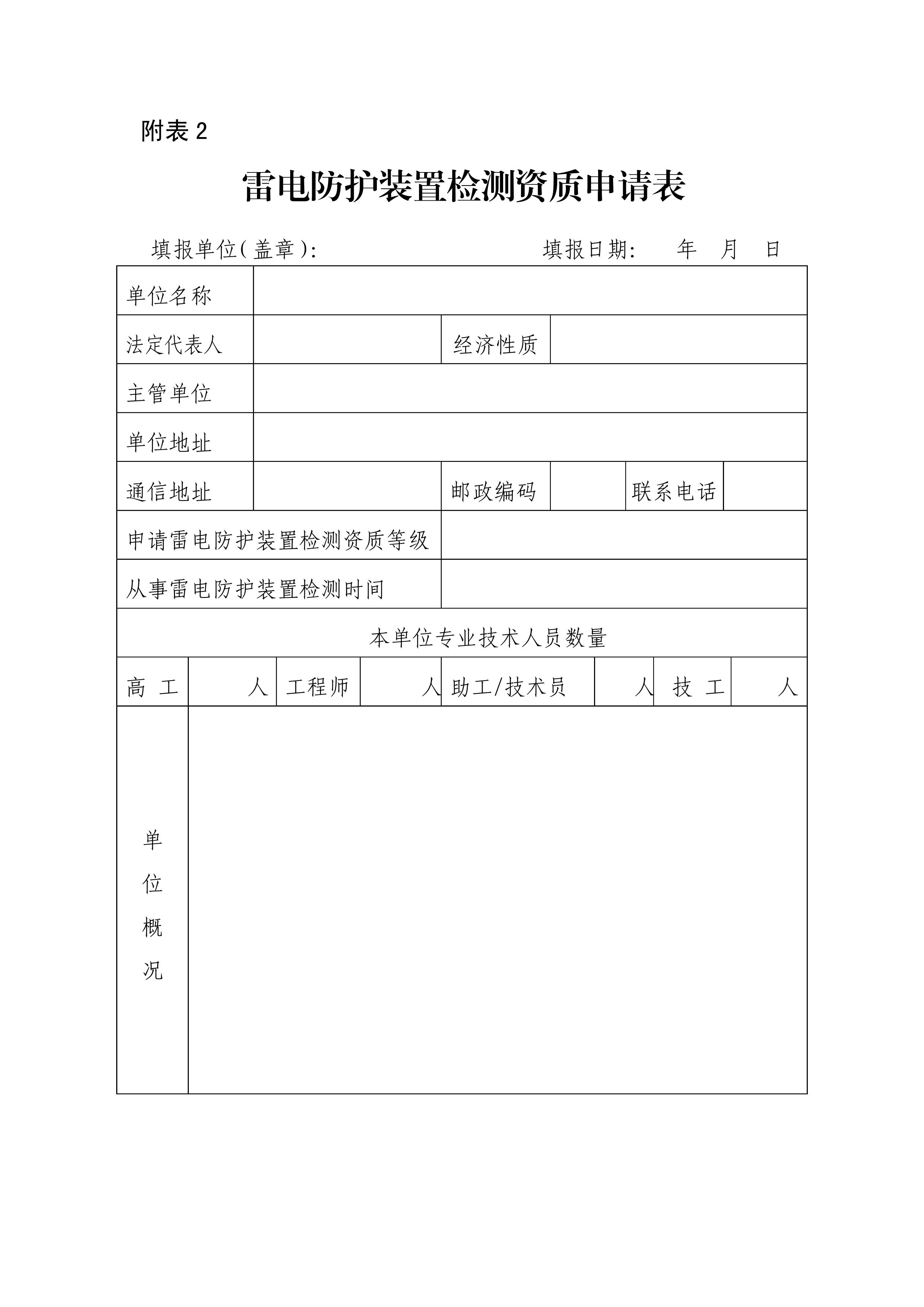 (一)《雷电防护装置检测资质申请表》(附表 2);