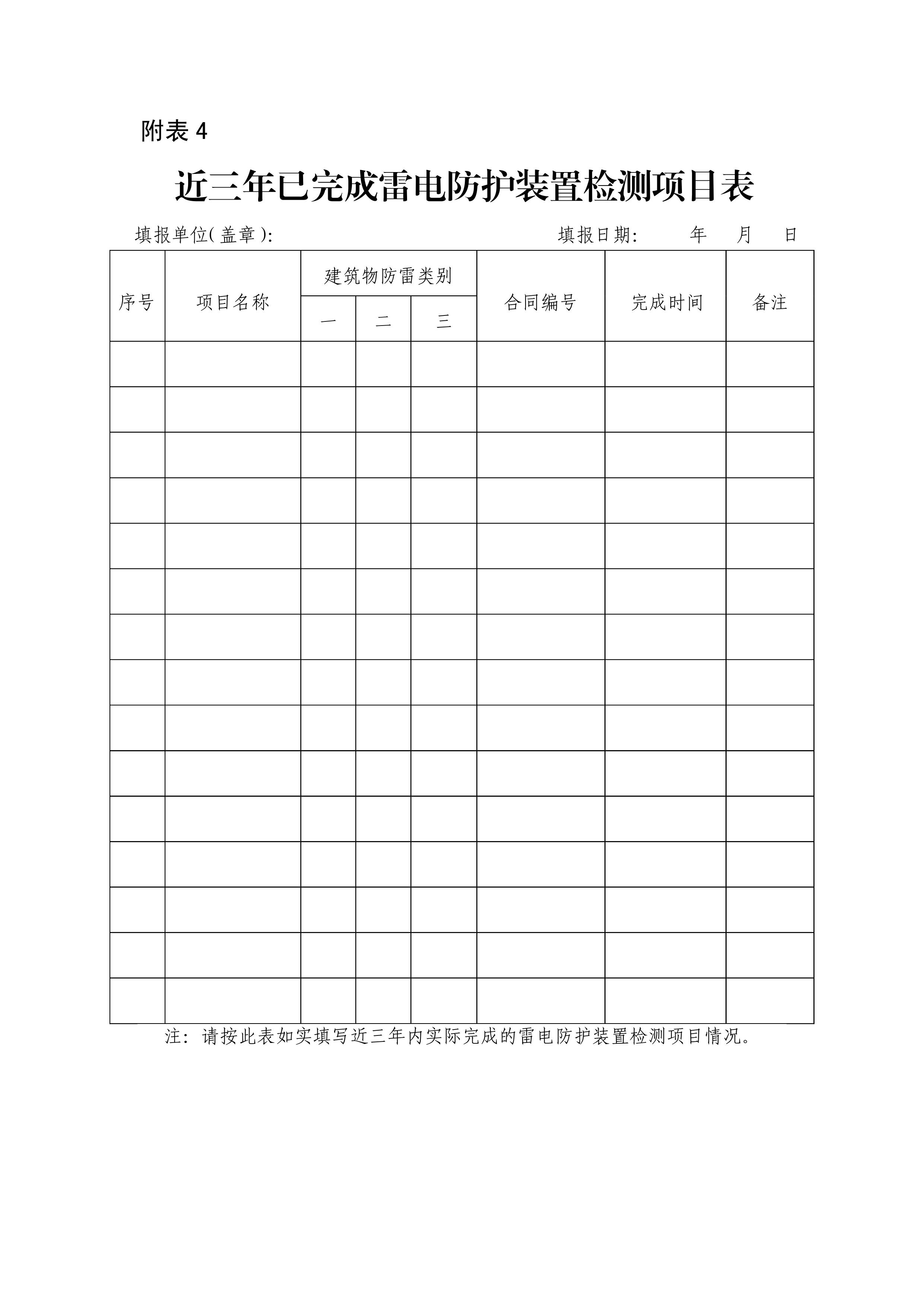 (一)《近三年已完成雷电防护装置检测项目表》(附表 4);