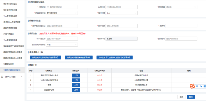 参保人通过该功能为本人办理生育医疗费用报销登记。