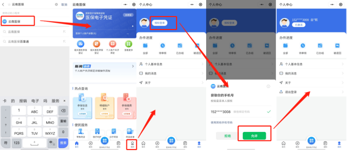 1、微信搜索“云南医保”==>点我的==>跳出授权登录==>授权登录成功。