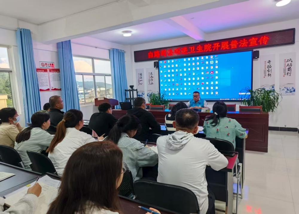 为进一步增强基层医护人员防范网络电信诈骗意识,提升防范电信诈骗风险的能力,为患者提供更安心的就医环境,7月14日,白路司法所走进白路卫生院,开展了一场以“守好自己的钱袋子,不当违法工具人”为主题的反电诈宣传活动。