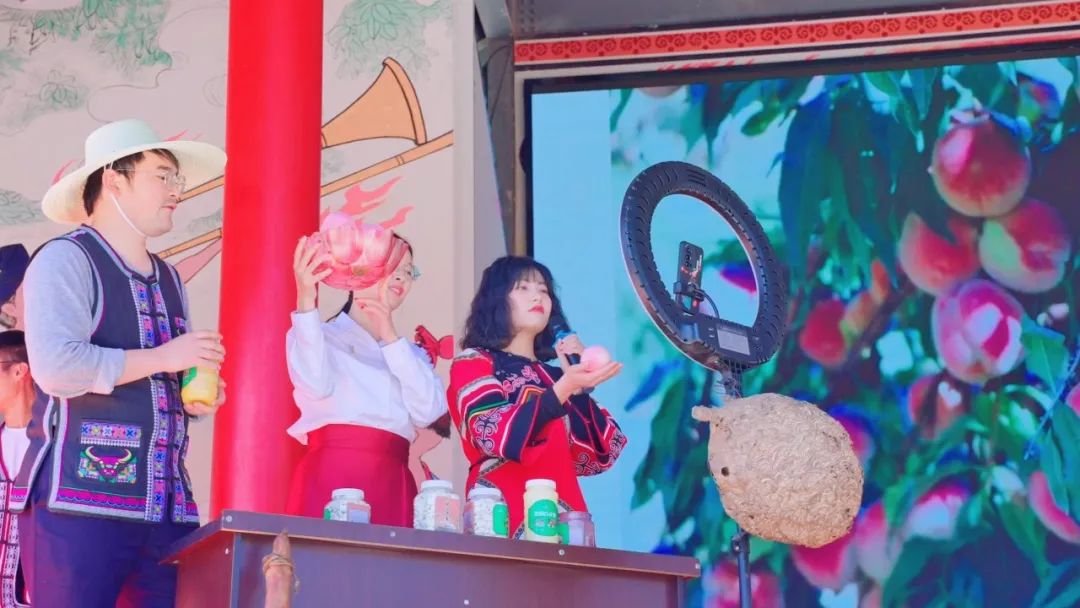 “大家现在看到的是我们发窝乡的山猪火腿,放养在高山一年以上的生态猪,它们吃的是中草药,喝的是山泉水,睡的是松毛席,住的是天然氧吧……”近日,武定县发窝乡代家村500余亩桃花开得正盛,一个由返乡大学生组成的直播小队正在桃林直播,主播刘学林正在介绍核桃油、土蜂蜜、地莲花等农特产品,幽默风趣的语言吸引了不少粉丝前来互动,直播间人气不断攀升“这是我们第二次返乡带货,今年2月,在团县委的支持下,我们在武定狮子山帮助农户以直播+短视频的形式销售农特产品。当天直播商品曝光量达1.7万,线上线下销售额达9295元。”返乡大学生刘学林介绍。
