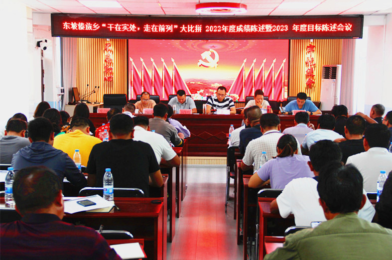 6月18日,东坡乡召开“干在实处,走在前列”大比拼2022年度成绩陈述暨2023年度目标陈述会议。党政班子成员、五办六中心三所全体干部职工、8个村委会四职干部、全体驻村工作队员共计80余人参加会议,乡党委书记文建华同志主持会议并讲话。