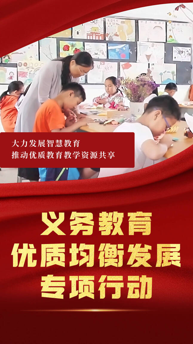 义务教育优质均衡发展专项行动。推进集团化办学和九年一贯制办学,实现1所学校集团化办学,新组建2所九年一贯制学校。加快培育一批优质学校,建立优质学校联新建学校、城区学校带农村学校、先进学校帮薄弱学校机制,带动区域内的教育质量整体提升。用好国家智慧教育平台,大力发展智慧教育,推动优质教育教学资源共享。不断优化完善义务教育教师县管校聘,持续推进“双减”工作,抓好“五项管理”,助力义务教育优质均衡,切实让老百姓家门口的好学校多起来。