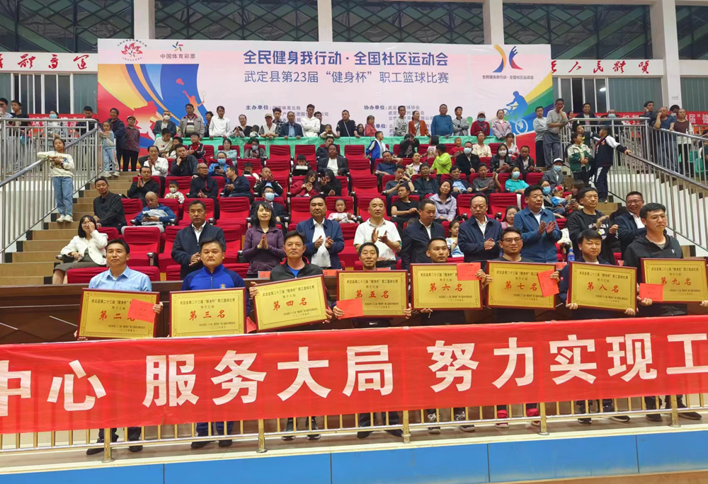 武定县第二十三届“健身杯”职工篮球比赛于3月26日在武定县体育馆开幕,4月6号晚圆满落下帷幕,此次比赛由县人民政府主办,县教育体育局、县总工会承办,县篮球协会、县裁判员协会、云南建体劳务有限公司协办。