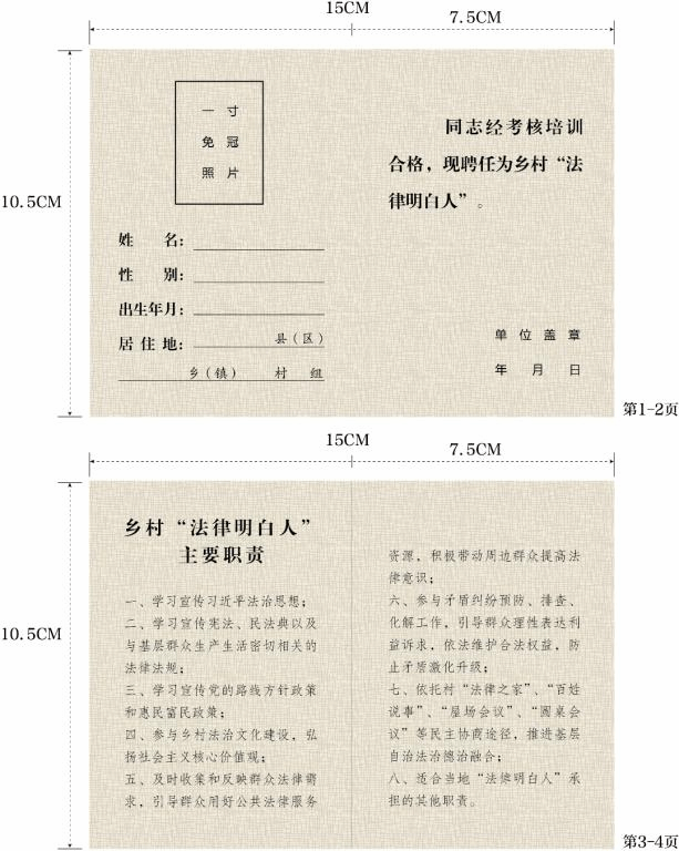 一、乡村“法律明白人”证书封面、内芯样式及说明