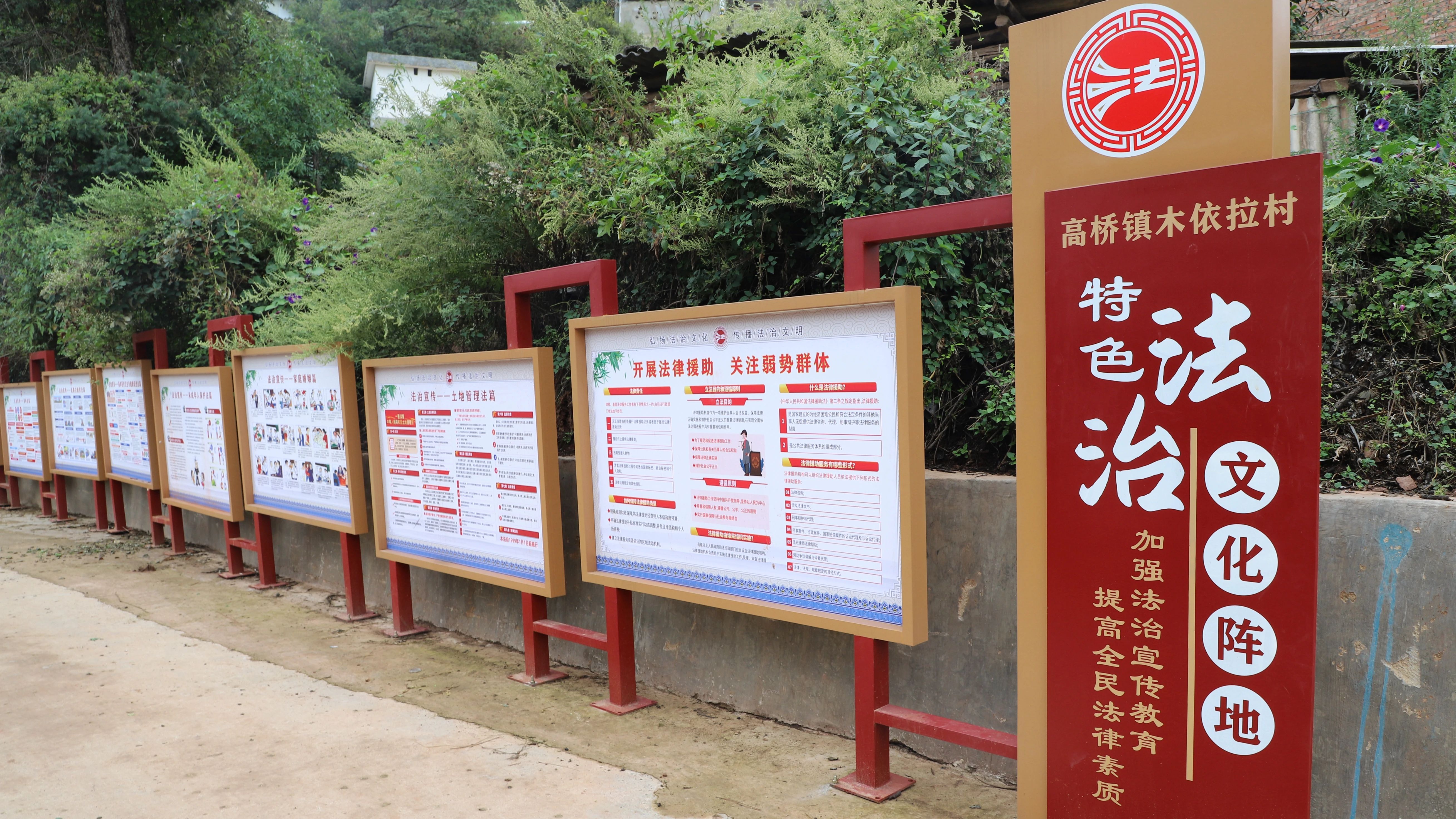 打破宣传固态,建设法宣阵地。各村深入挖掘特色文化,用好高桥镇特色法治文化阵地,将法治宣传与传统文化、红色文化、民族文化等因素相结合,因地制宜,在农家书屋、活动室、楼道走廊等公用区域悬挂、张贴法治警句、法治常识、法治典故,将法治宣传有形呈现、生动表达,提高法治文化阵地利用率和党员群众参与度。