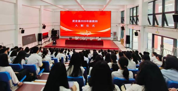 8月24日,武定县2025年新教师入职仪式在武定县香水小学报告厅举行。仪式由县教育体育局副局长朱建琼主持,县教育工委常务副书记、县教育体育局党组书记、局长何毓才出席仪式并讲话。