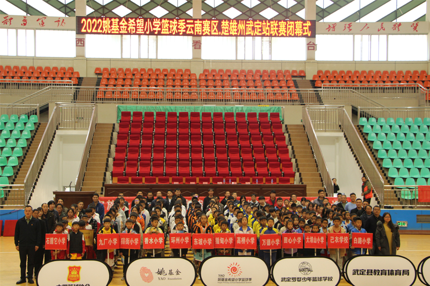 3月1日上午,2022姚基金希望小学篮球季云南赛区.楚雄州武定站联赛在武定县体育馆落下帷幕,此次比赛由云南省青少年发展基金会、武定县教育体育局、共青团武定县委主办,香水小学、武定罗婺少年篮球培训学校承办,来自全县10个乡镇13所姚基金结对帮扶学校参加了比赛。