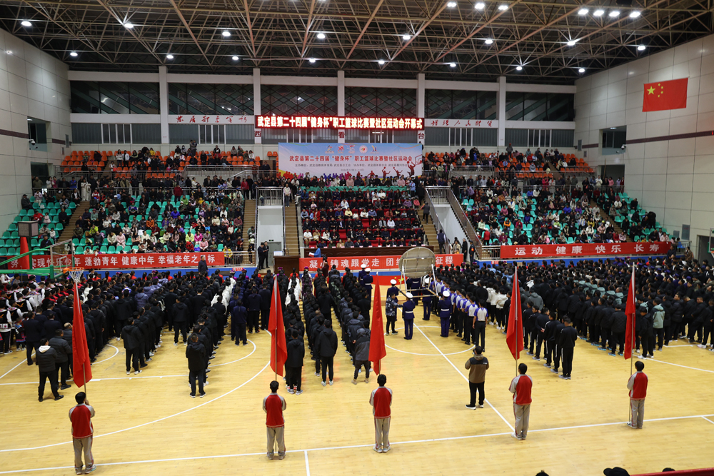 12月3日晚,武定县第24届“健身杯”篮球赛暨社区运动会在县体育馆隆重开幕。县委书记罗如贵出席并宣布运动会开幕,县委副书记、县长沈海燕出席并致辞,县人大常委会主任普正祥、县政协主席周廷质等县级领导出席。参赛运动员、教练员、裁判员及市民群众近2000人参加开幕式。