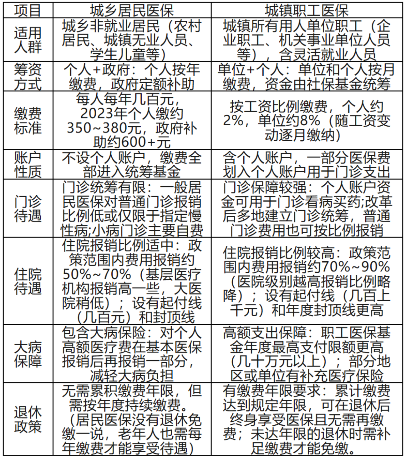 6.城乡居民医保和职工医保有何区别?