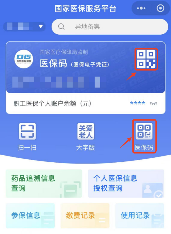 第二步:点击小程序中的“医保码”即可展示扫码(已完成申领的前提下)