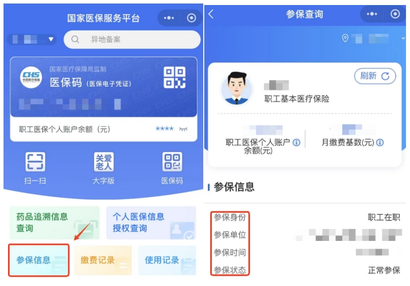 1.参保信息:点击“参保信息”可查询到目前参保的具体情况,包括“参保身份”“参保状态”等信息。