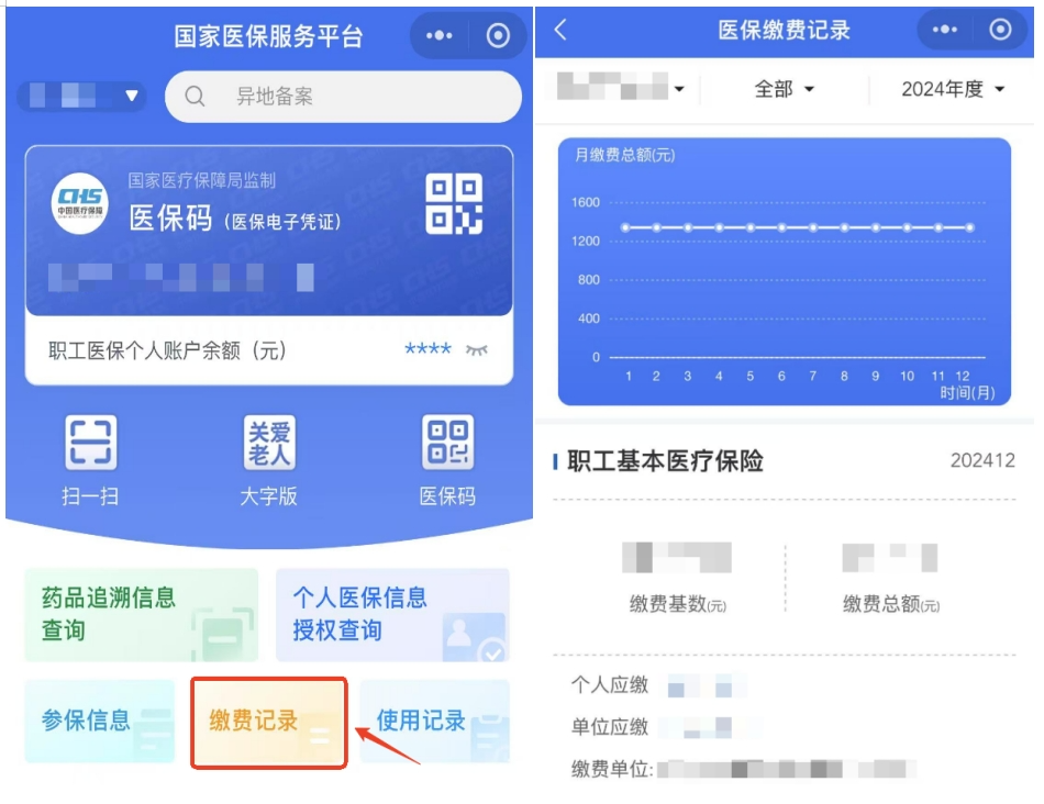 2.缴费记录:点击“缴费记录”可查询到既往的缴费记录和缴费金额等信息。