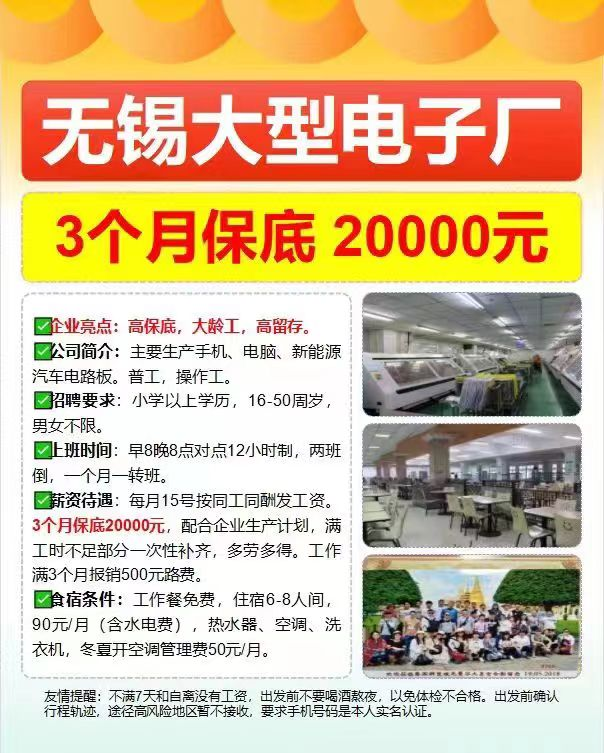 薪资:员工17~22元/小时,白班计时10.5,晚班计时11,夜班补助10元/天,每月工时300小时以上。综合工资5000元/月~8000/月,两班倒,站班,坐班,任你选。
