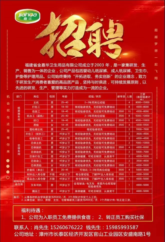 漳州辉华福包装有限公司招聘简章
