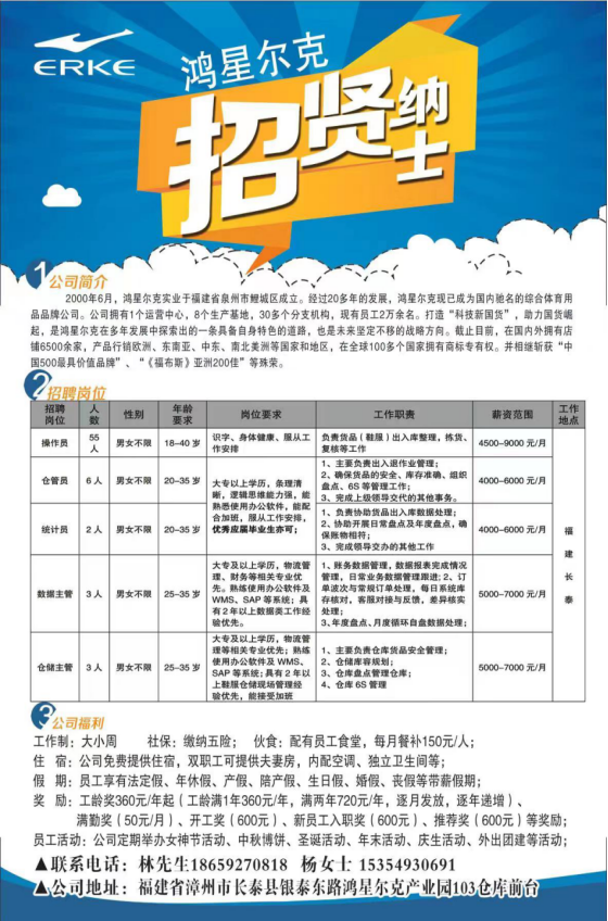 3、仓管员/计量员/品管员/机修:3800-5000元/月