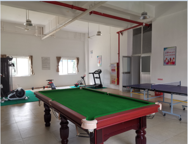 3、厂区生活设施:超市、健身器材、阅览室、家庭影院等;