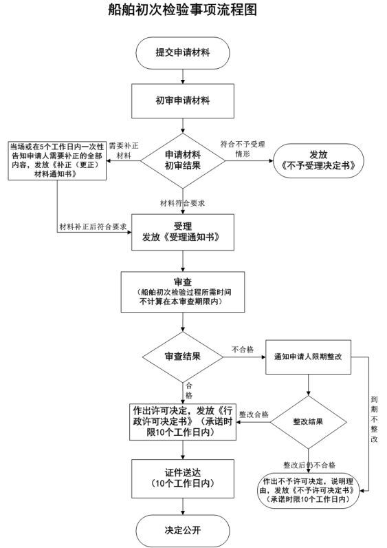 (一)具有许可权限的部门,对符合条件的,应当在5个工作日内作出许可决定,向申请人核发相应的《船舶检验证书》。