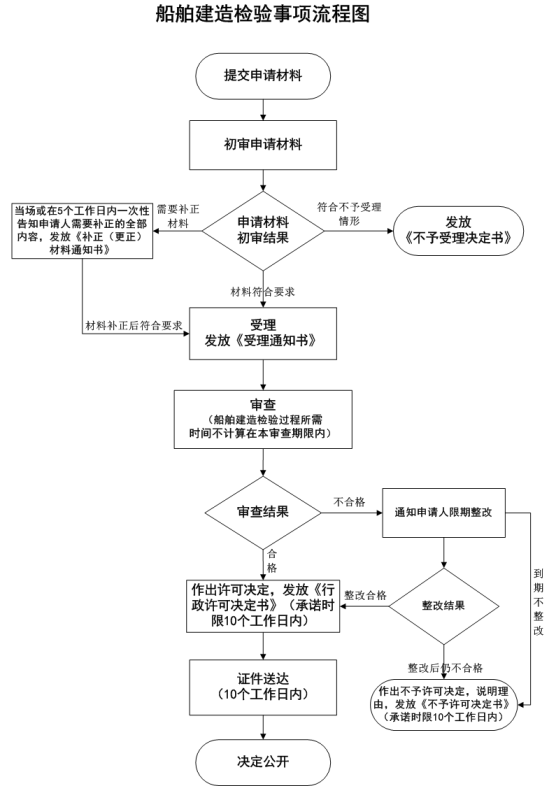 (一)具有许可权限的部门,对符合条件的,应当在5个工作日内作出许可决定,向申请人核发《船舶检验证书》。