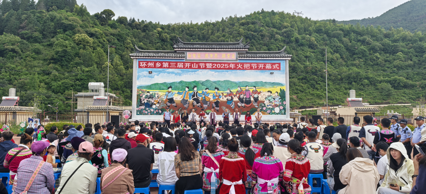 7月14日上午,以“有一种叫云南的生活·菌丰人欢 火火环州·激情共燃火把节”为主题的环州乡第三届开山节暨2025年火把节在环州村委会民族文化广场正式拉开帷幕。来自四面八方的宾客朋友与环州乡父老乡亲欢聚一堂,共享这古老与现代交融、神圣与欢腾并存的民族盛会。