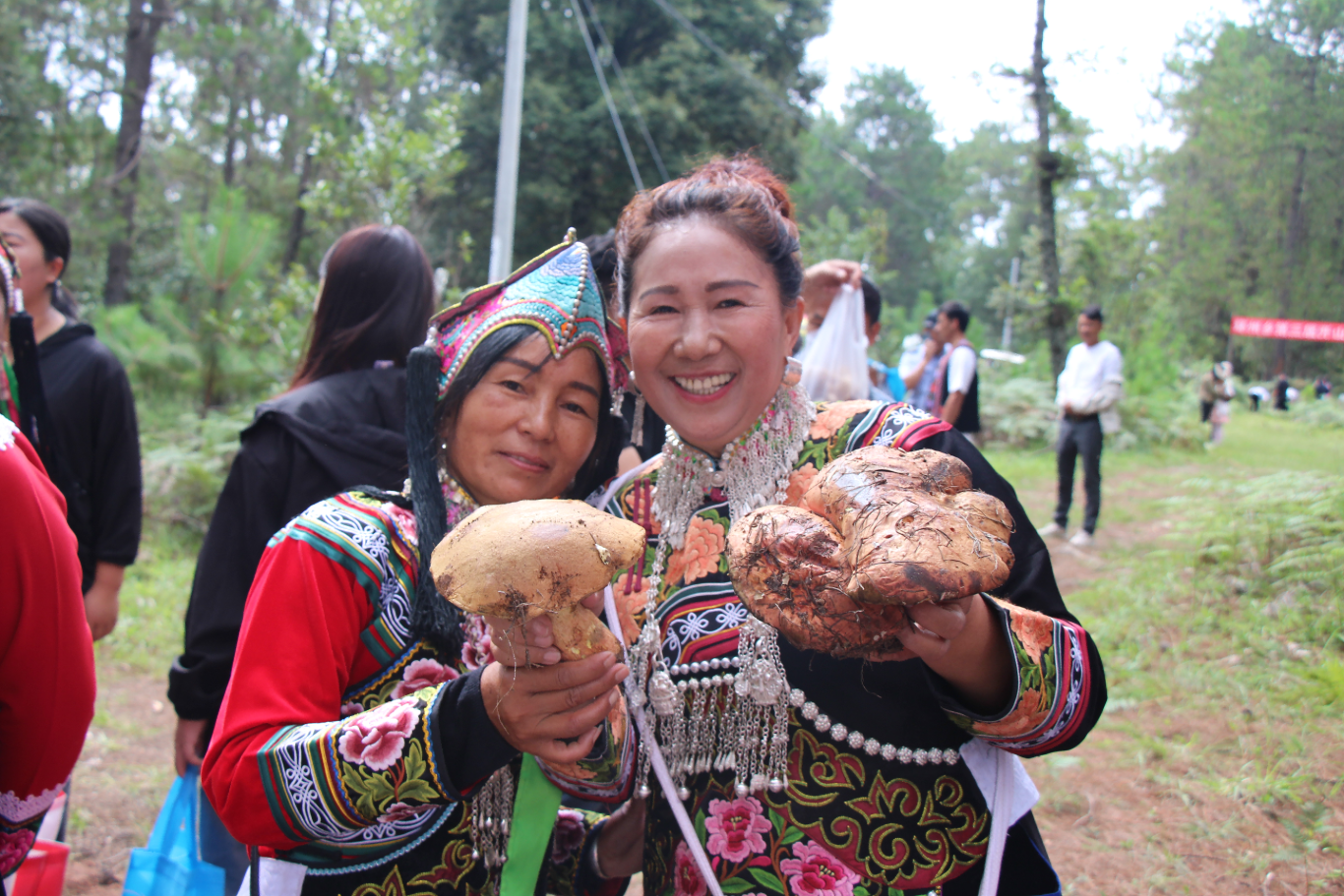 开幕后,毕摩带领菌农们进入环州乡万松山封山育茸基地,开启了野生菌采摘比赛的序幕。整个比赛过程充满了轻松愉快的氛围,菌农们的谈笑风生,正是他们通过采摘野生菌增收致富、生活日益美好的真实写照。