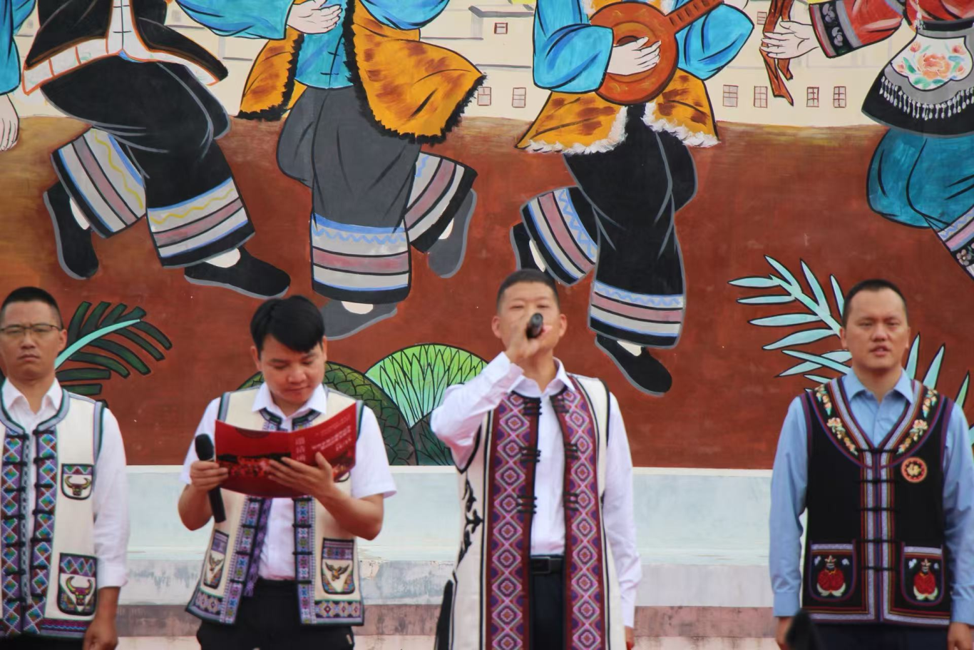 开幕式上,乡党委书记陈选斌宣布活动开幕,乡党委副书记、乡长王庭振发表致辞。王庭振表示,开山节与火把节是环州乡彝族同胞世代相传的重要文化瑰宝,承载着敬畏自然、感恩馈赠、祈福纳祥的深厚内涵。本届节会是环州乡赓续优秀民族文化传统、促进各民族交往交流交融、展现新时代乡村风貌的专业性盛会。他指出,举办开山节暨火把节,旨在“以节为媒、以节会友、以节促产”。